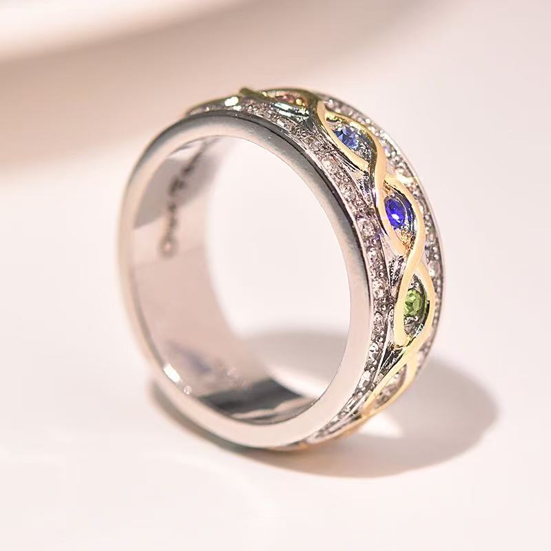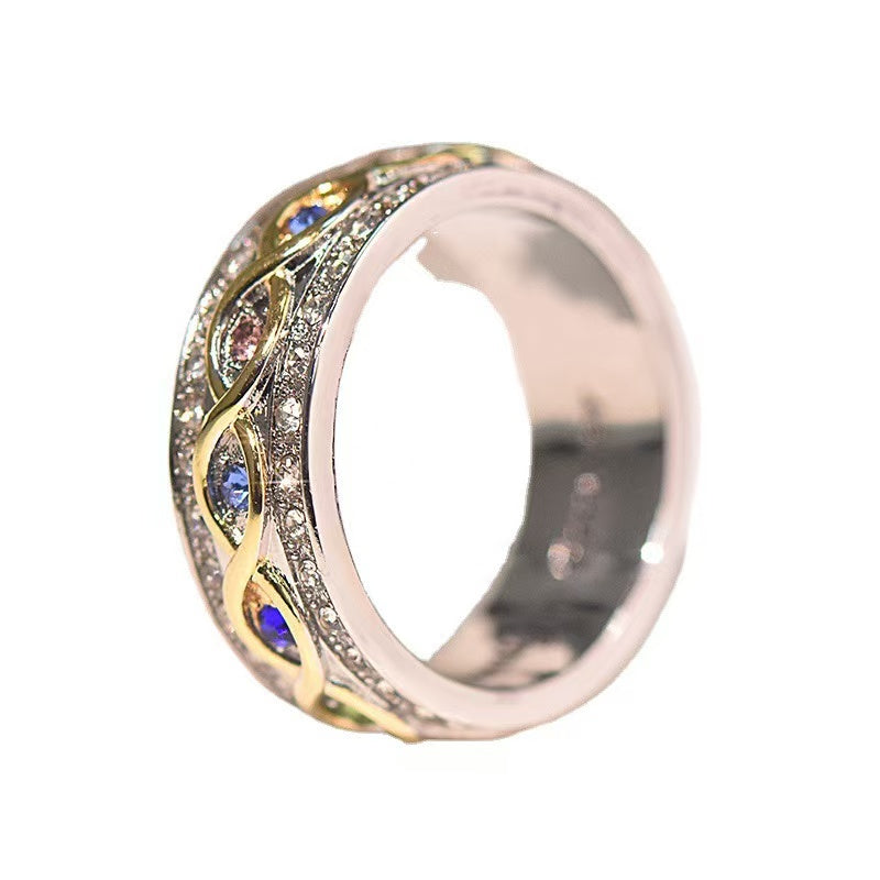 Wish Hot Selling New 18k Gold Plated Full Diamond Double Color Ring, Eternal Family Wedding Ring from Europe and America