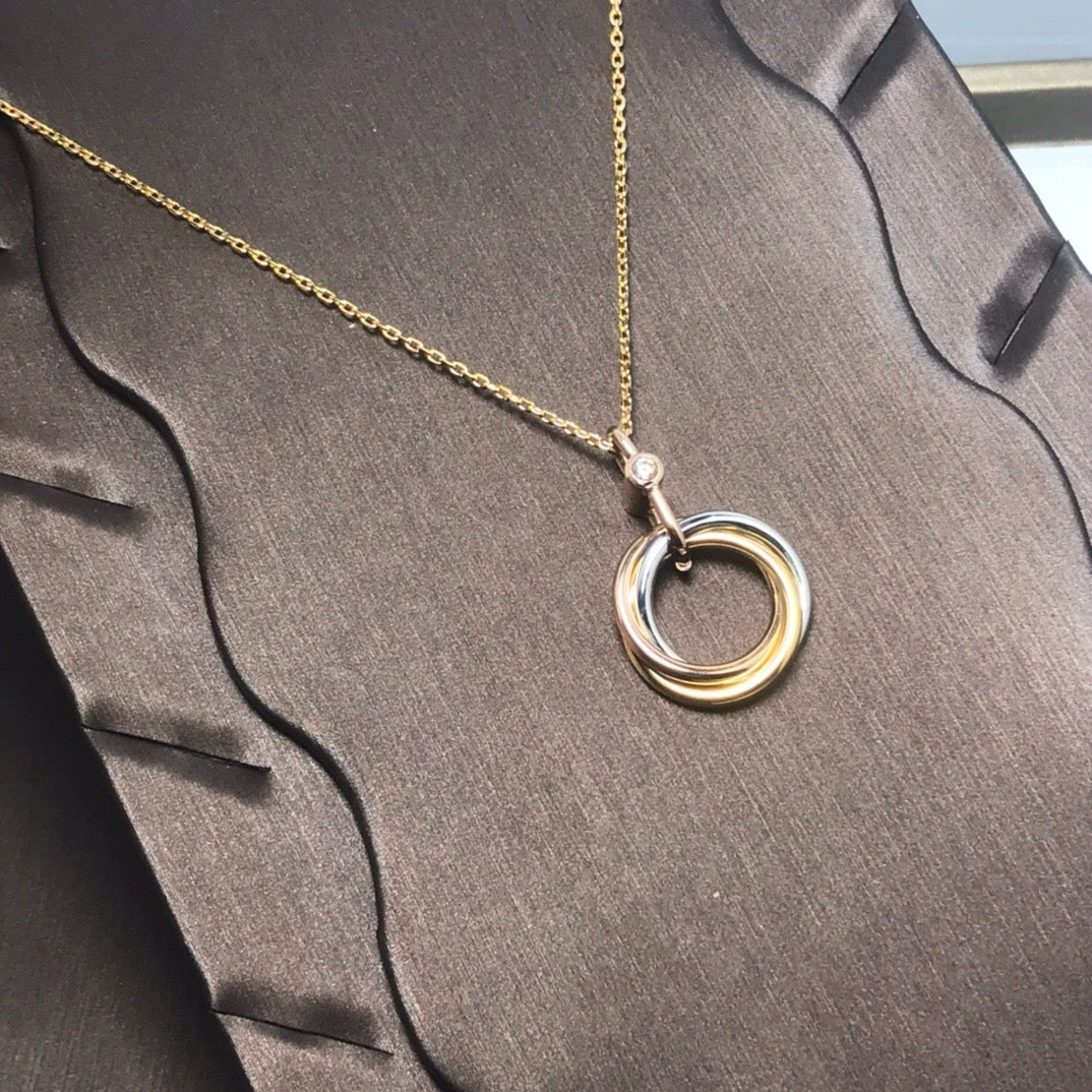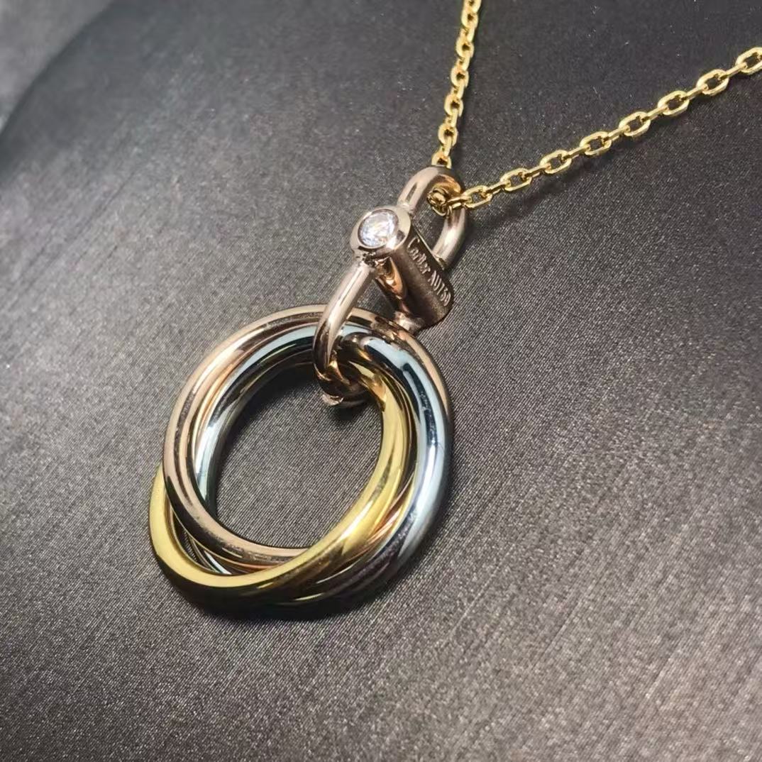 Cartier Necklace - New Version - Triple Ring - Three-Colored Single Diamond Couple Necklace