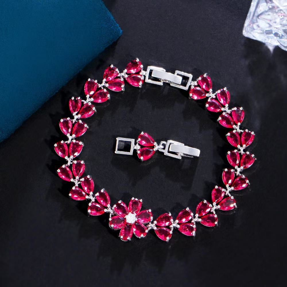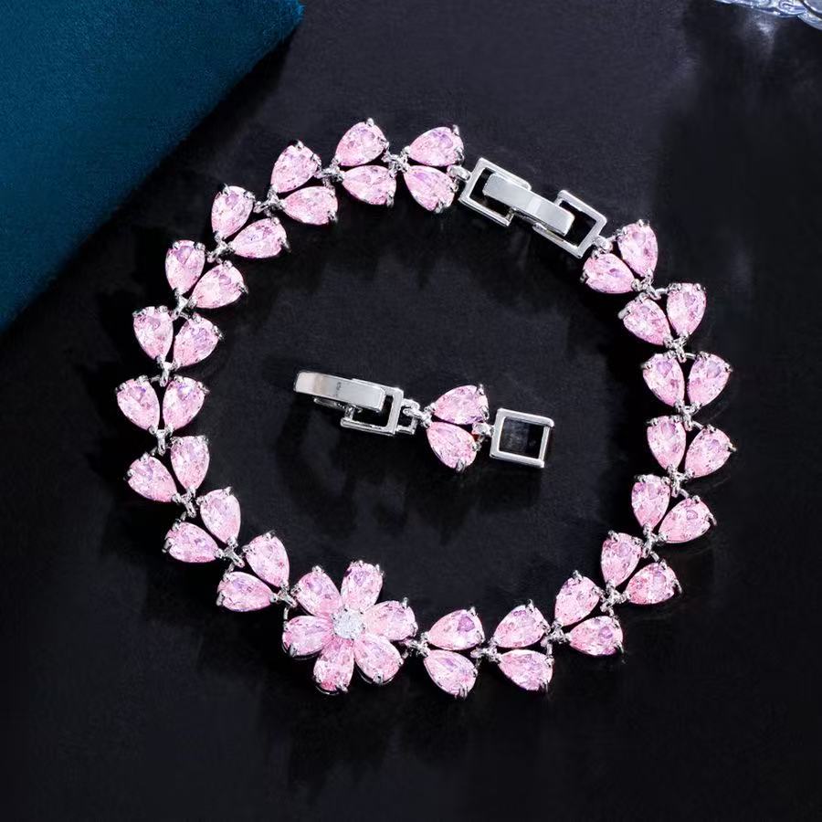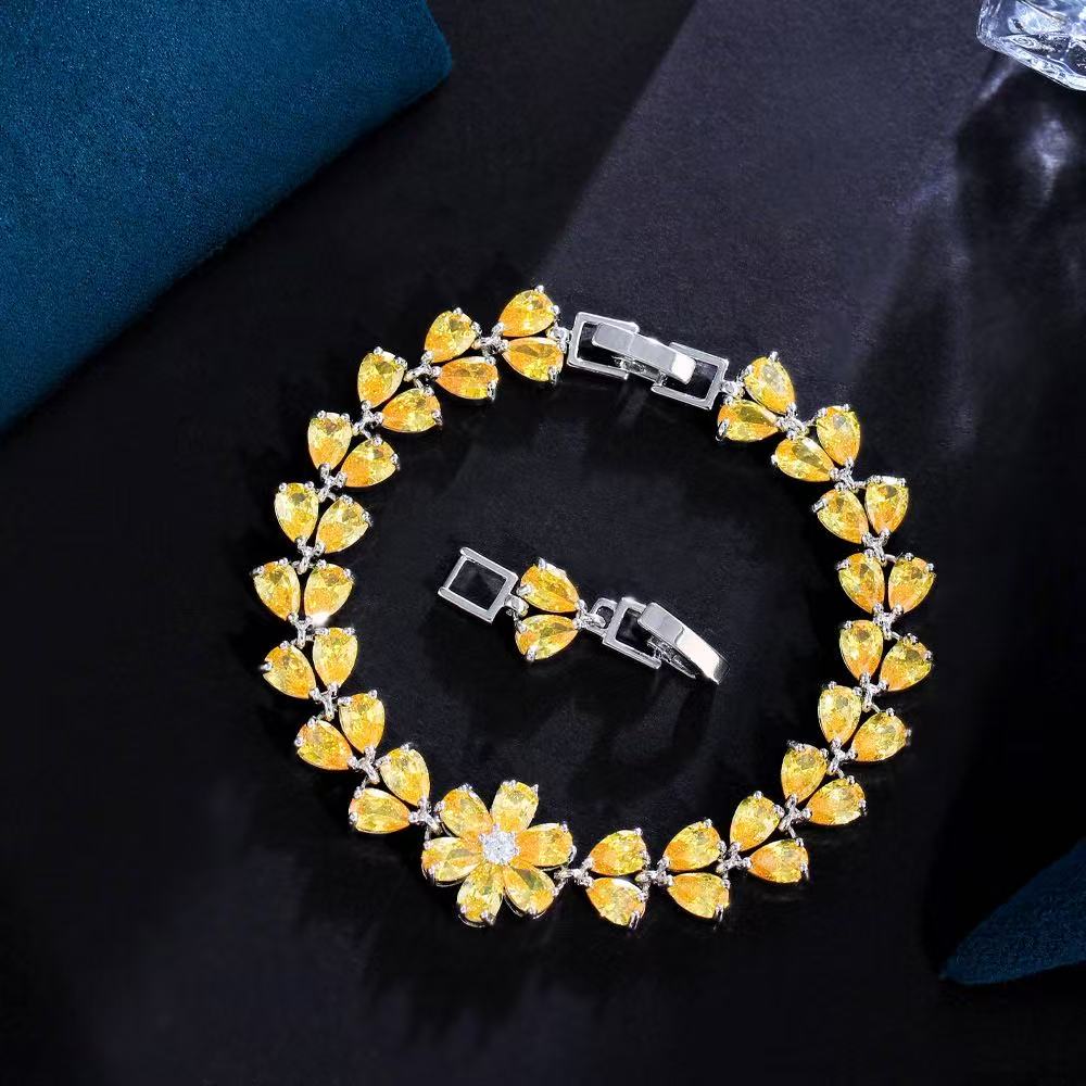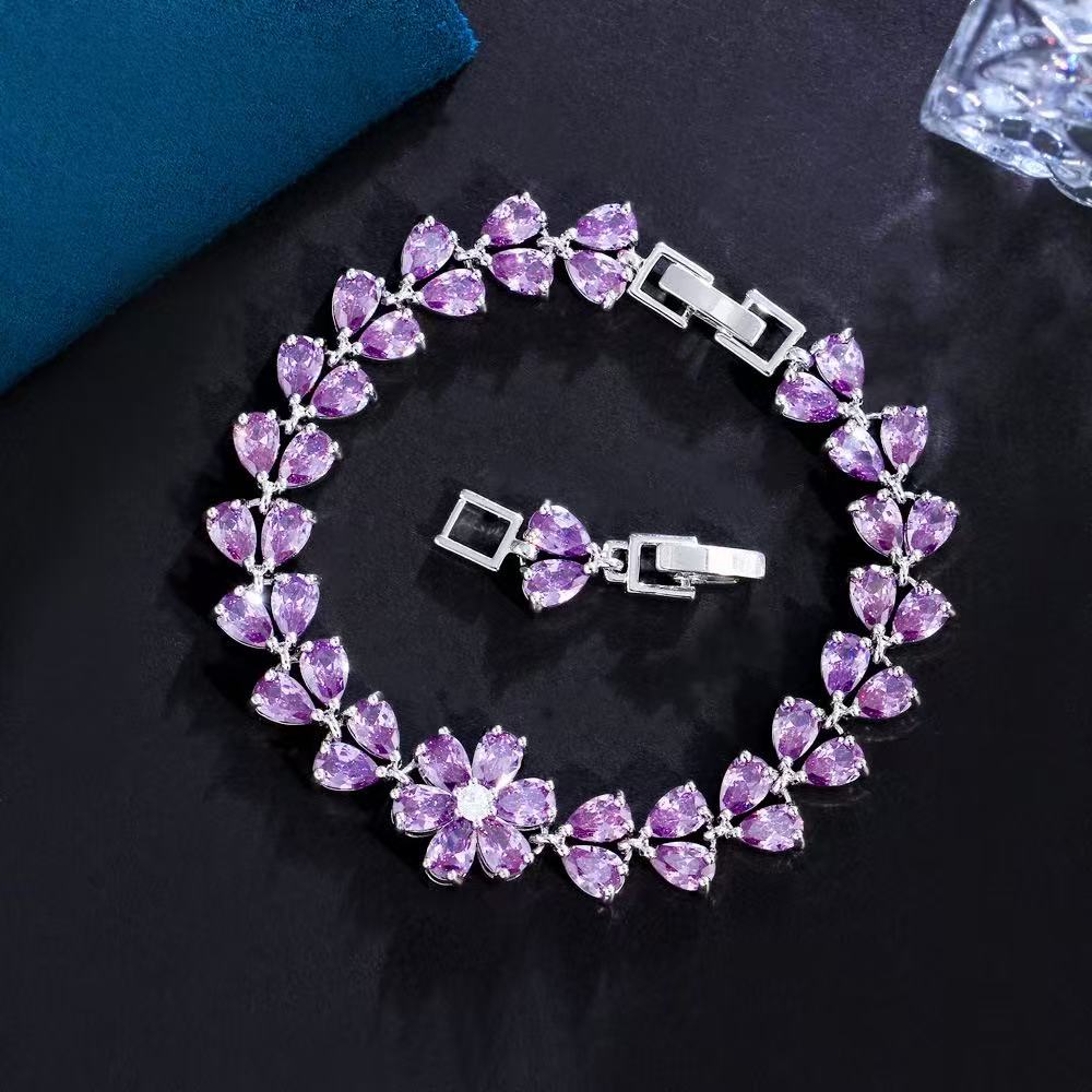 Multi-color optional European and American cross-border copper zircon jewelry creative flower bracelet versatile jewelry