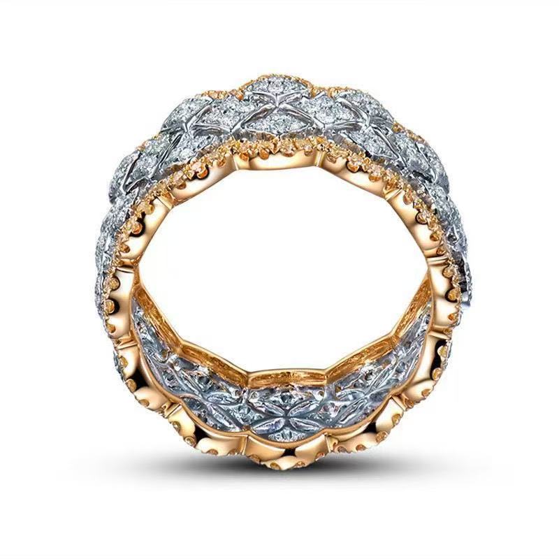 Huitan European Palace Sparkling Stars Lace Ring Women's Lace Honeycomb Crown Gemstone Ring Finger Ring