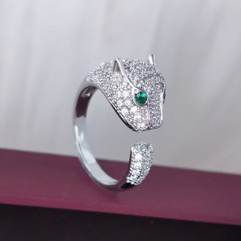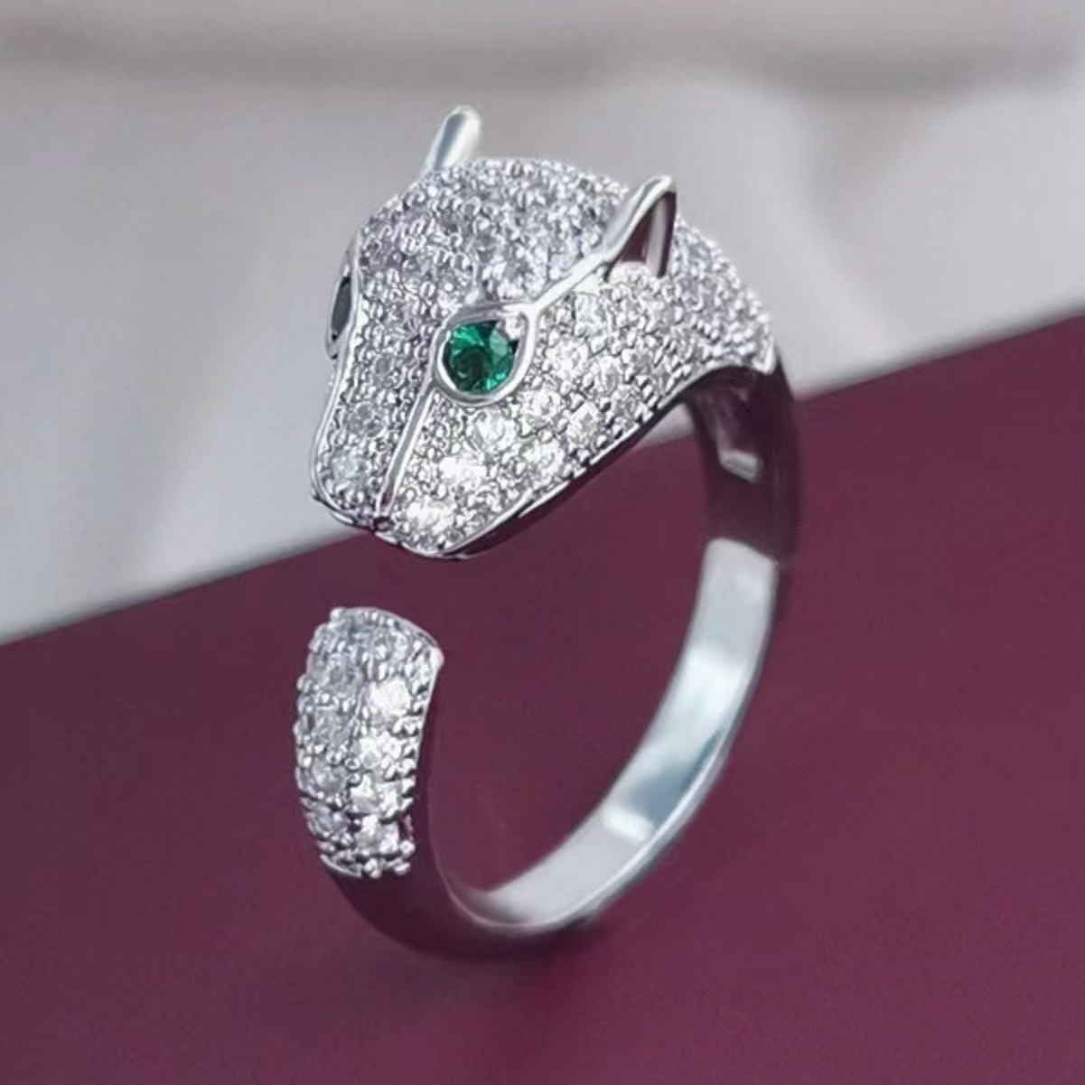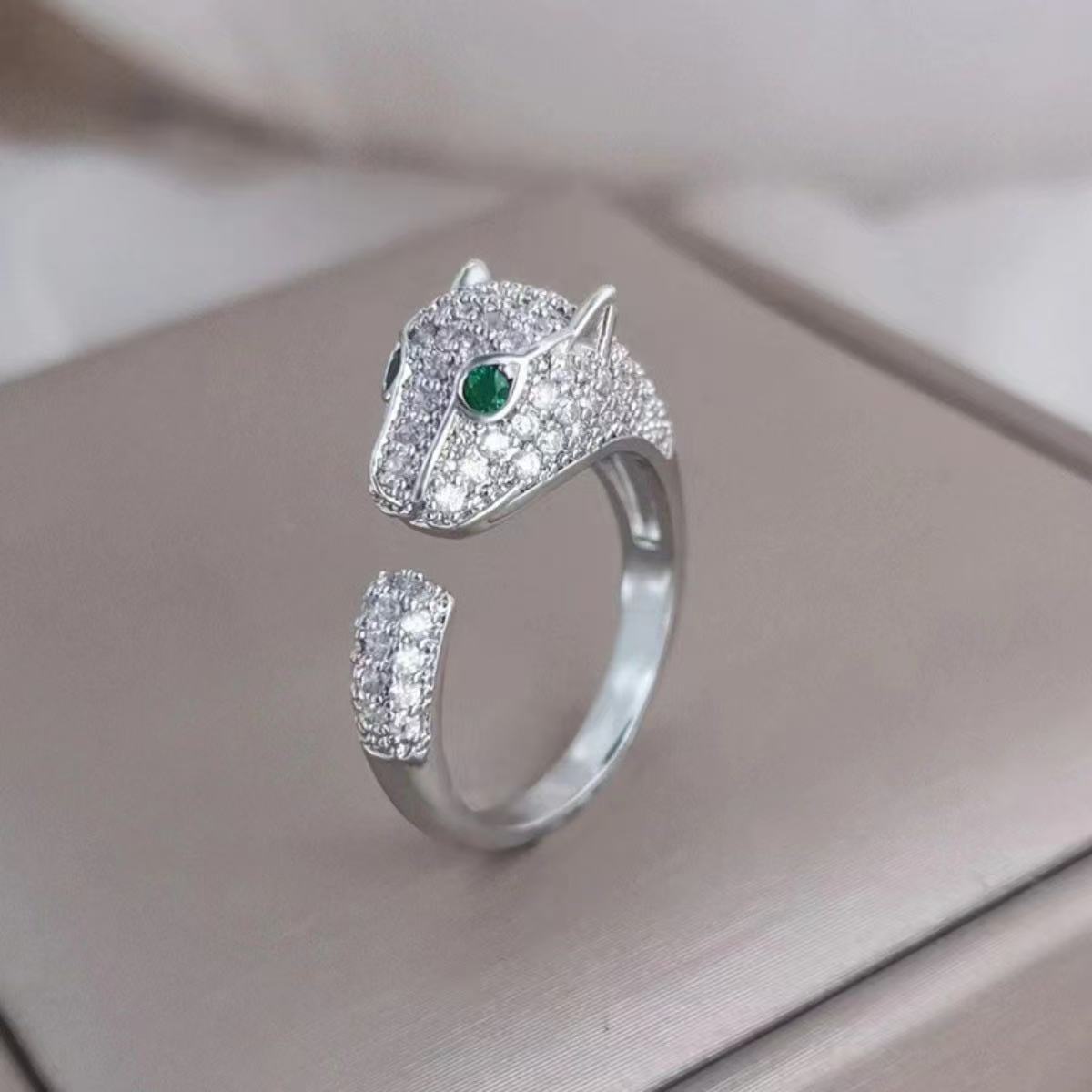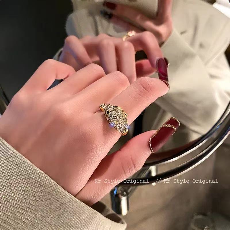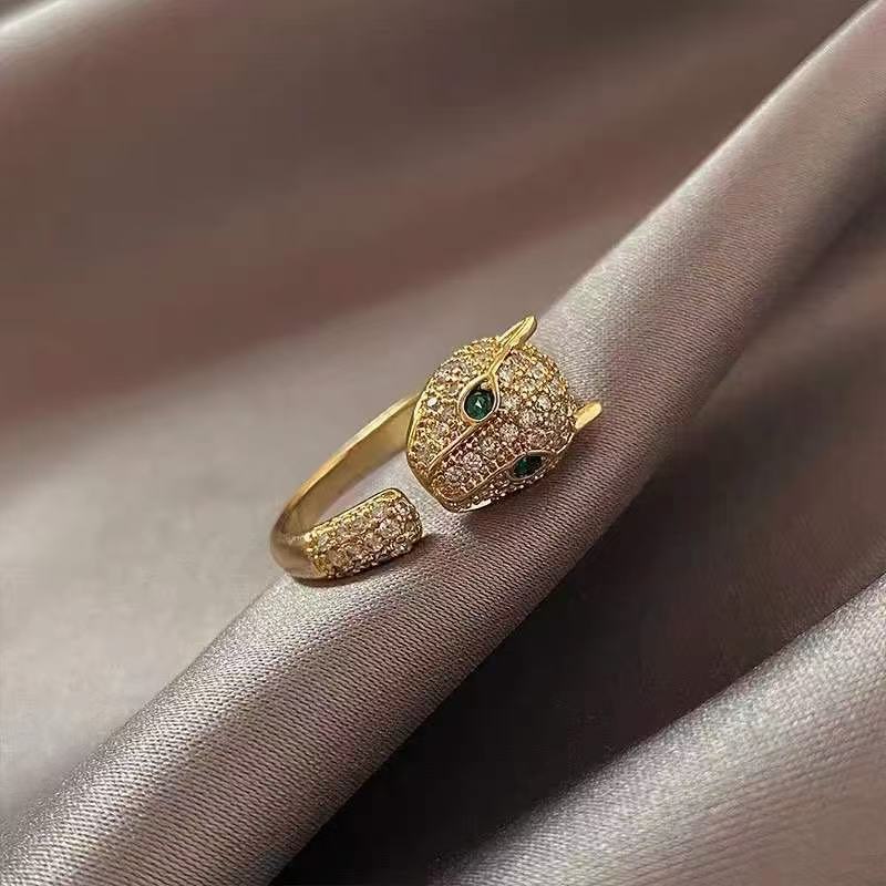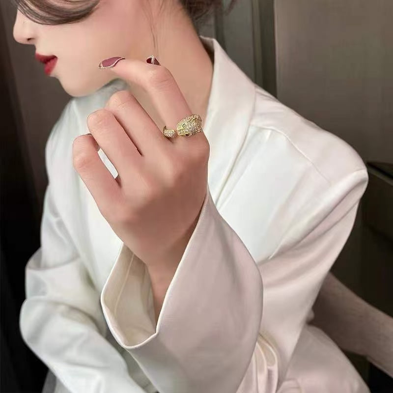 Leopard Head Full of Diamonds Female European and American Exaggerated Personality Trendy People Open Mouth Eating Ring Niche Design Spicy Girl Style Ring Female Ring