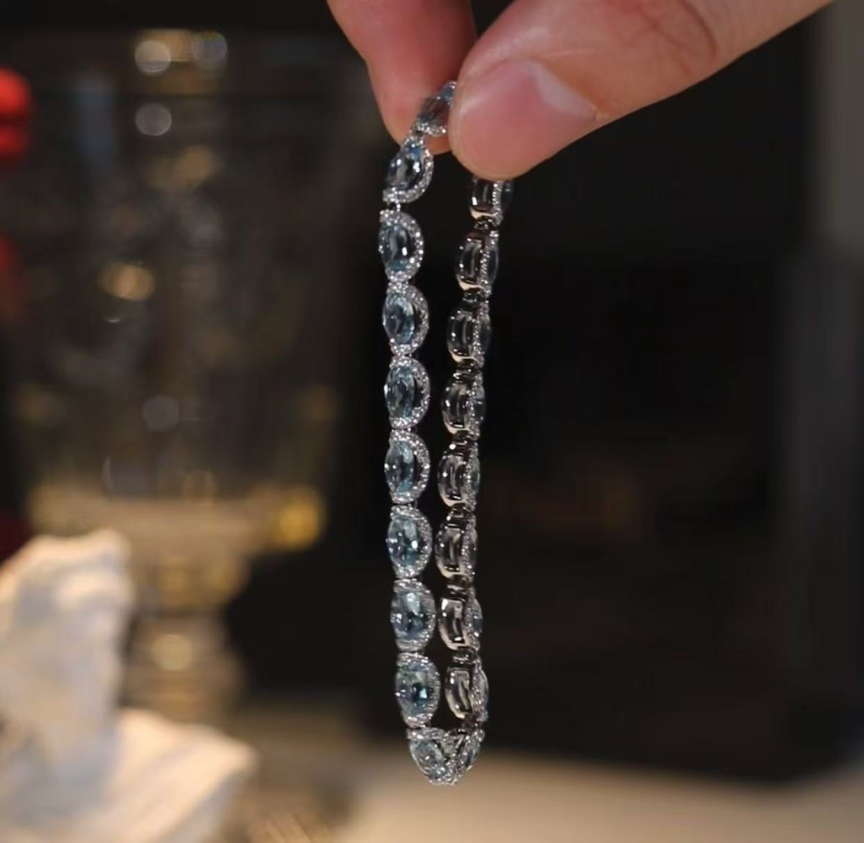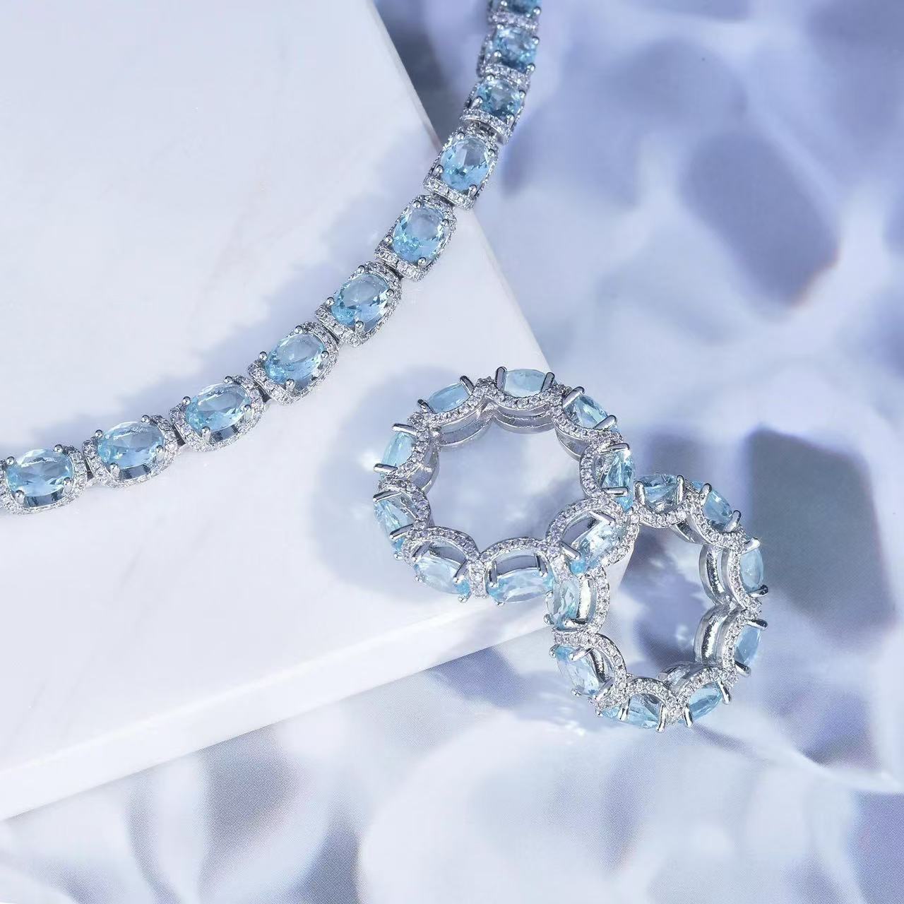 New European and American Micro Inlaid Diamond Sea Blue Ring, Star River Princess Lace Lace Sea Blue Treasure Bracelet, Colorful Treasure Ring