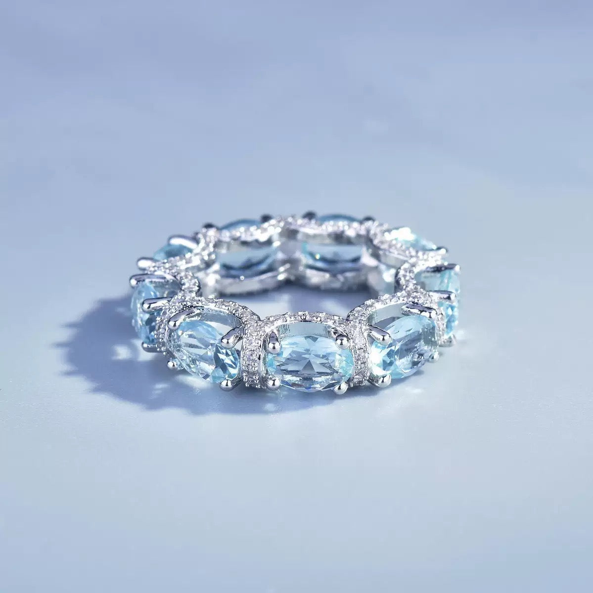 European and American micro inlaid diamond sea blue ring