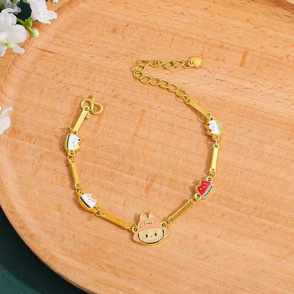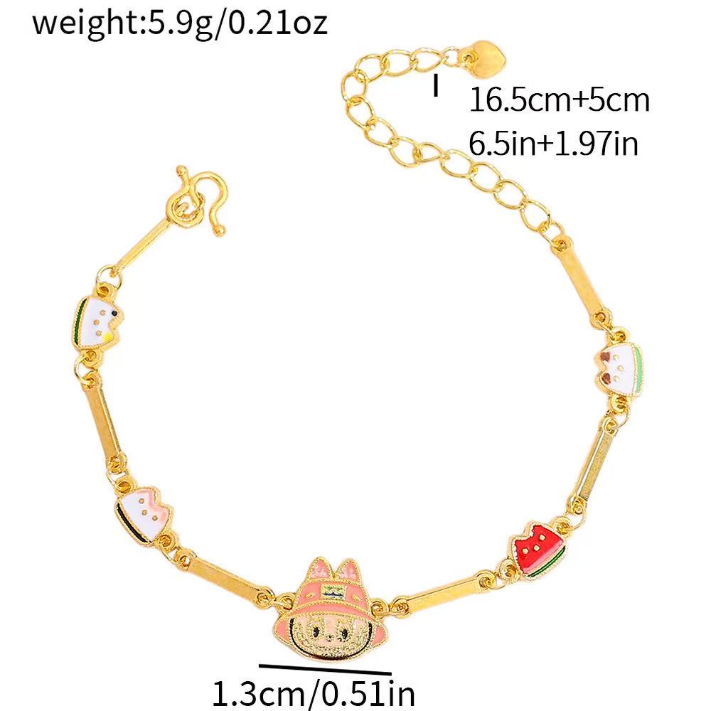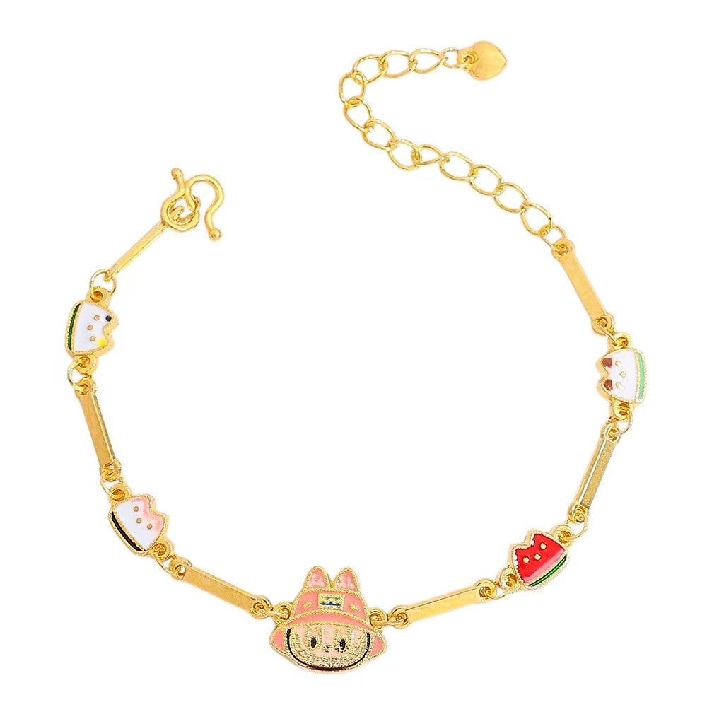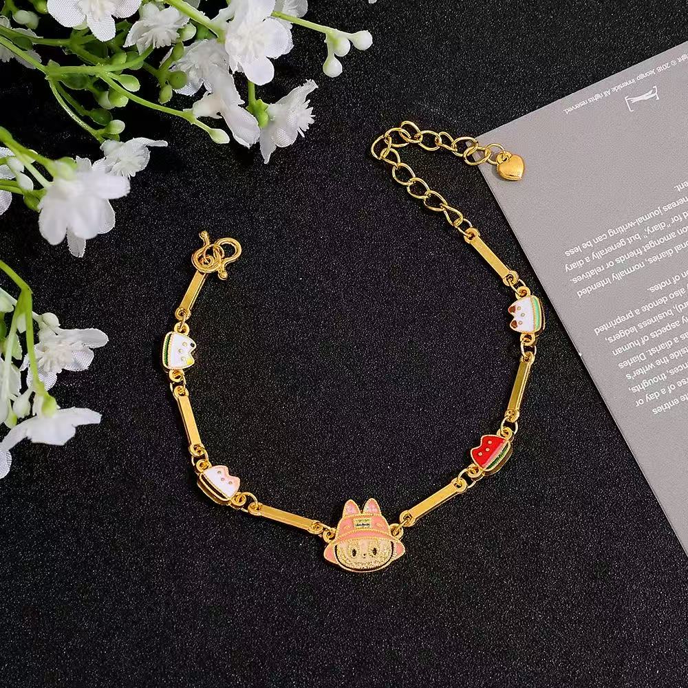 Exquisite gold Labubu cloth bracelet with niche design, light luxury, high-end feel, exquisite temperament, versatile Labubu bracelet