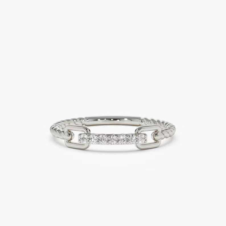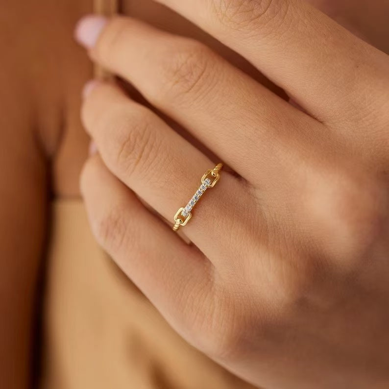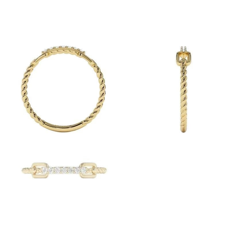 Geometric Line Micro inlaid Zircon Ring for Women's Light Luxury Fashion Cross border Commuting Jewelry
