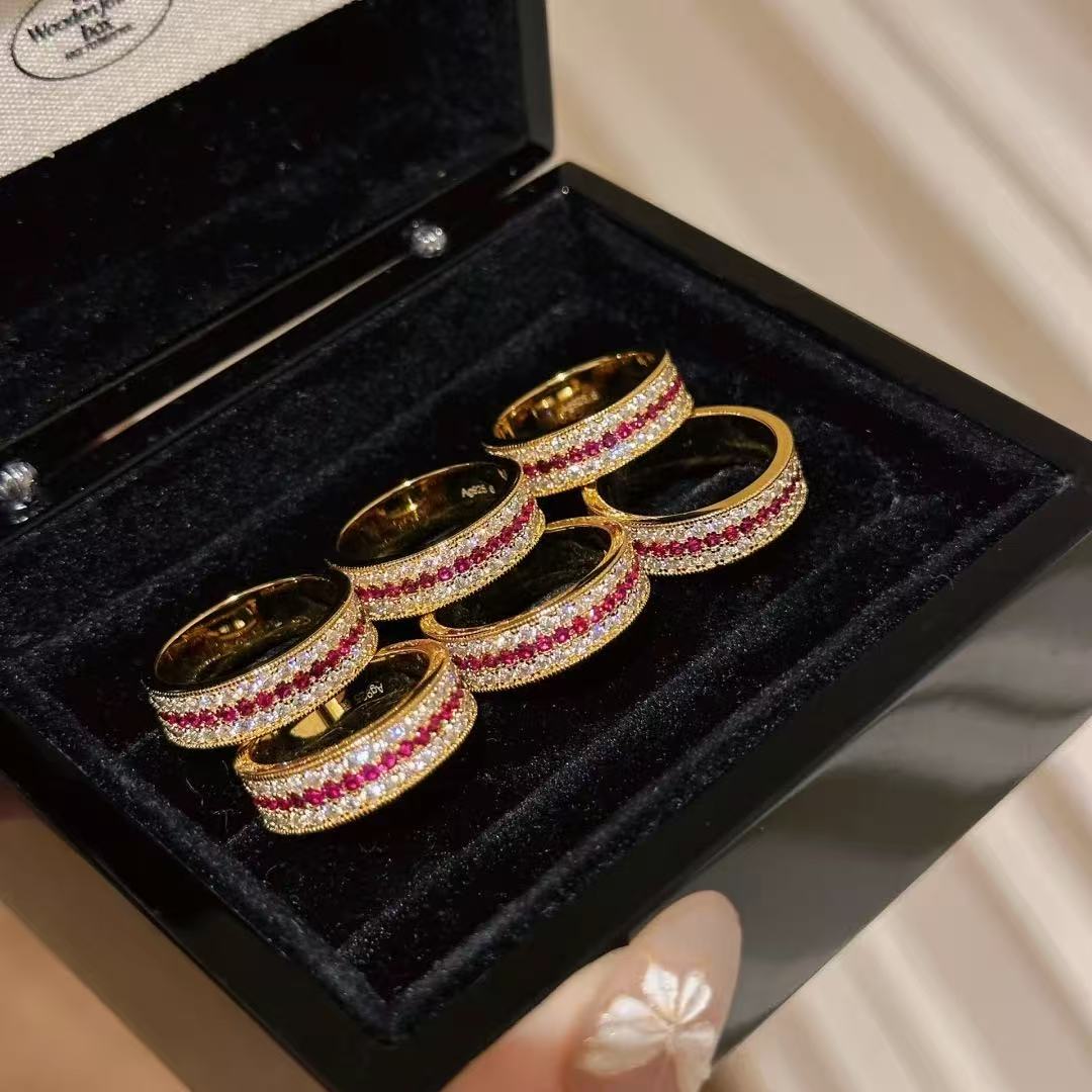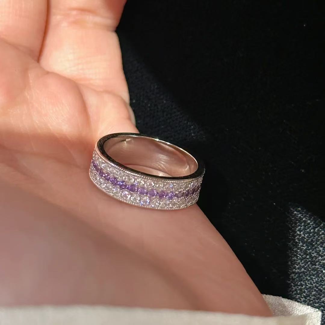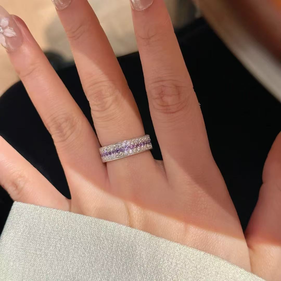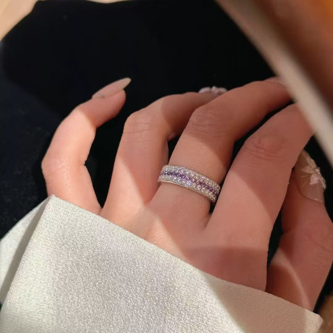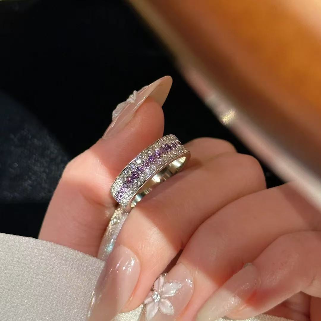 Fashionable, light luxury, super beautiful purple sparkling rose purple diamond ring with high-end feel, heavy industry diamond inlaid red corundum women's open size ring