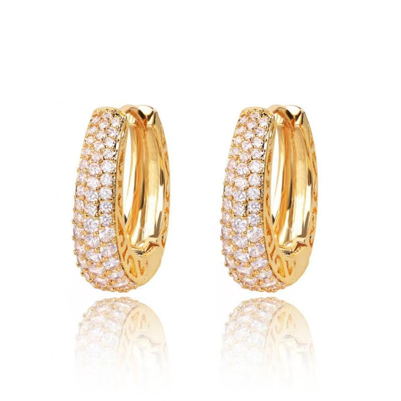 Hip-hop street diamond-encrusted personalized niche ear rings, Ins-inspired minimalist women's earrings, with a sense of hollow-out design