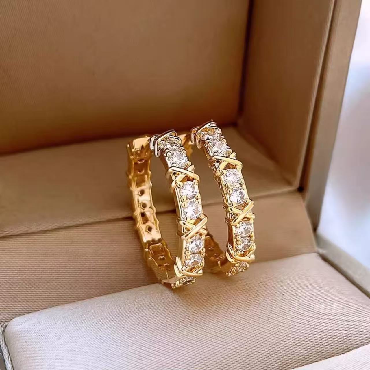 High end, light luxury, cross set diamond earrings suitable for square and round faces, new popular earrings, elegant earrings for women