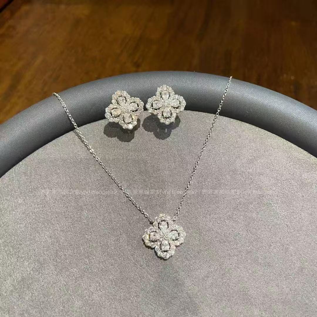 Fashionable and high-end titanium steel lucky grass necklace earrings women's accessory set that does not fade, light luxury temperament niche accessories