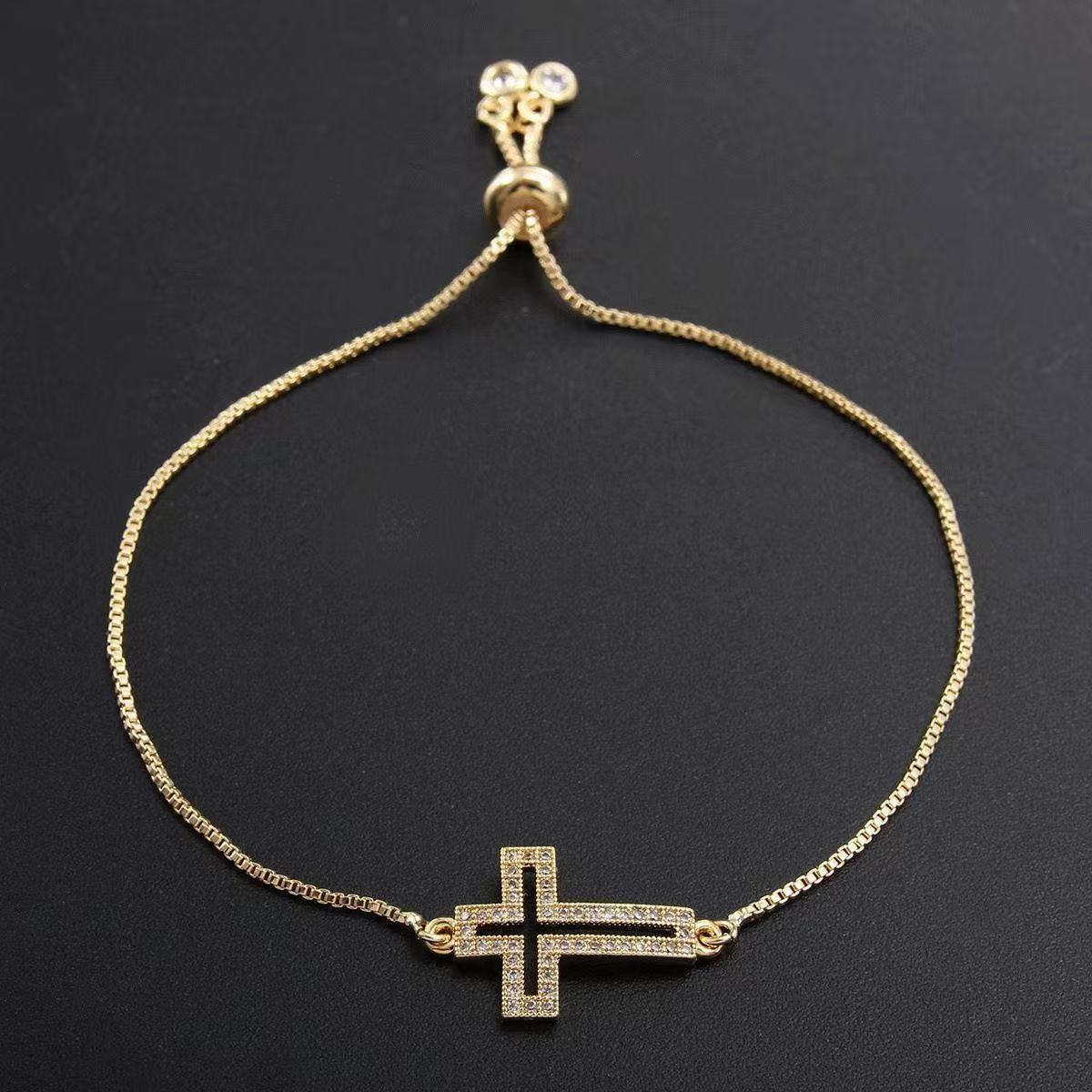 New Cross Bracelet Cross Border European and American Zircon Micro Inlaid Hollow Design Handmade for Women, Waterproof and Not Easily Allergic