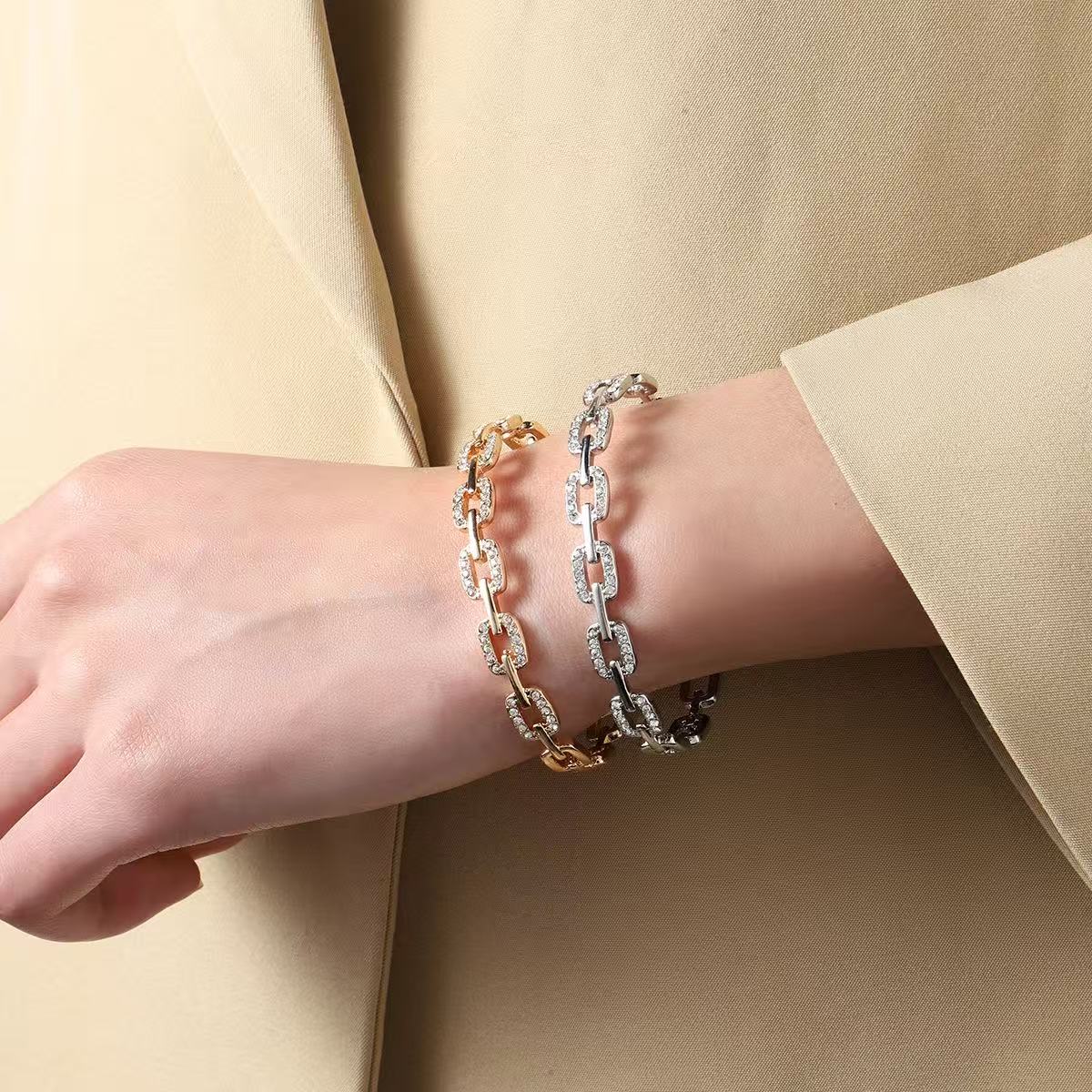 Light luxury micro inlaid zircon hollow square chain bracelet with female design sense, internet famous bracelet, niche hip-hop trendy cool bracelet