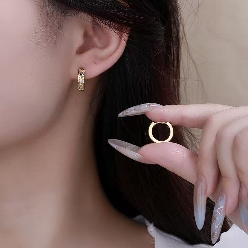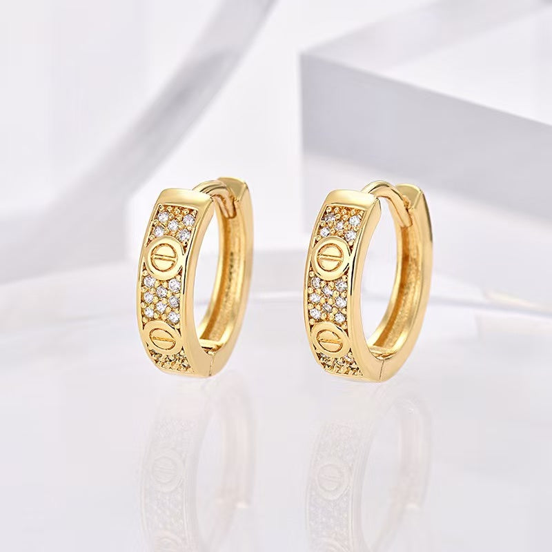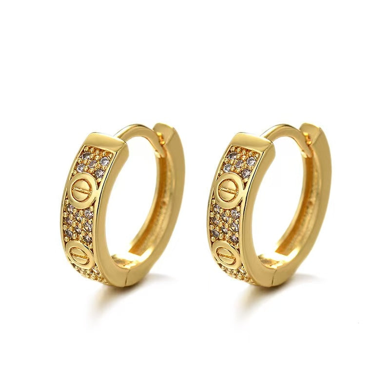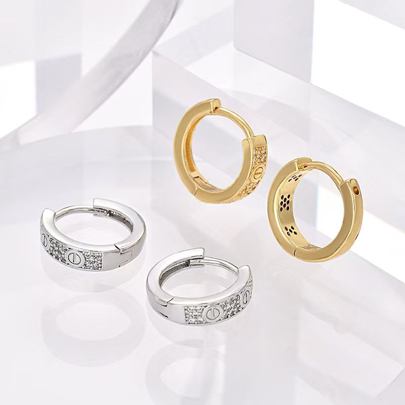 European and American new non fading light luxury niche retro earrings for female actors, elegant full diamond circle earrings, zirconium inlaid fashionable accessories