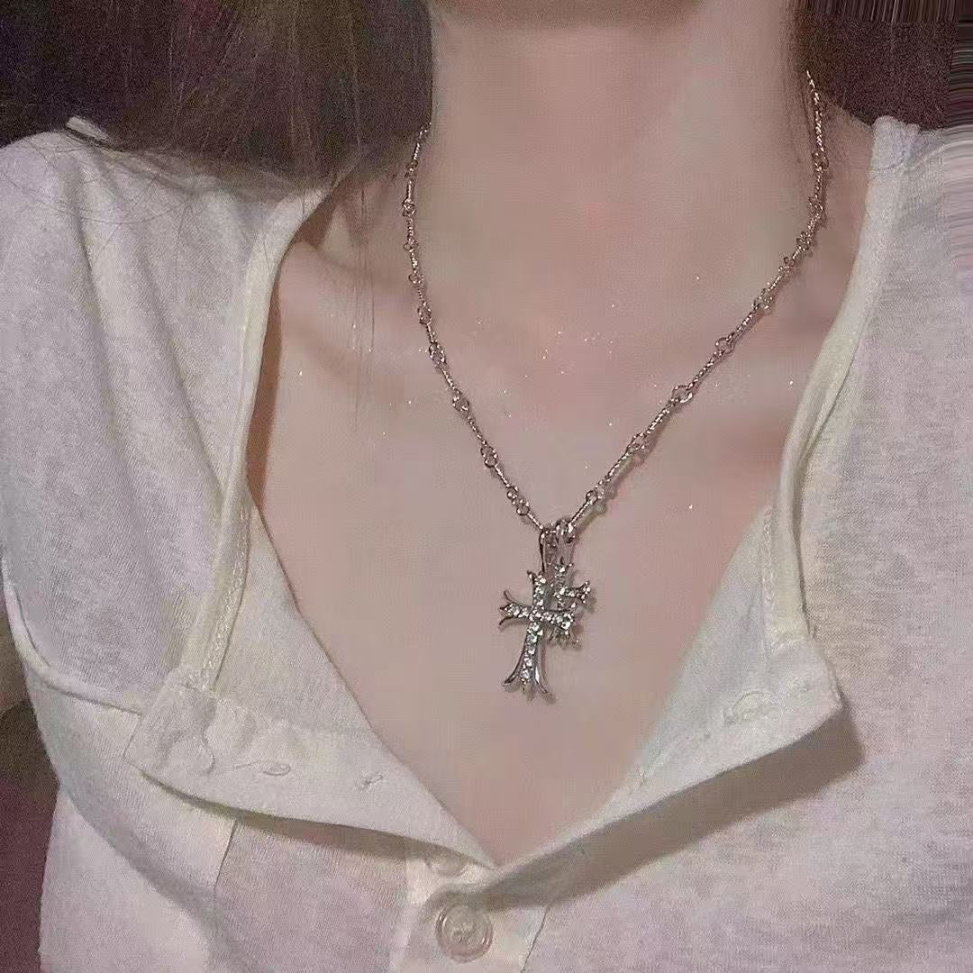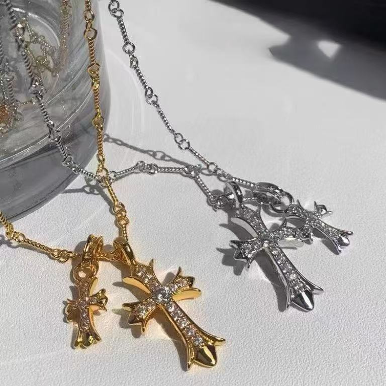 New Design Fashionable Love Necklace High End Personalized Metal Trendy Cross Necklace Cold Wind Long Chain