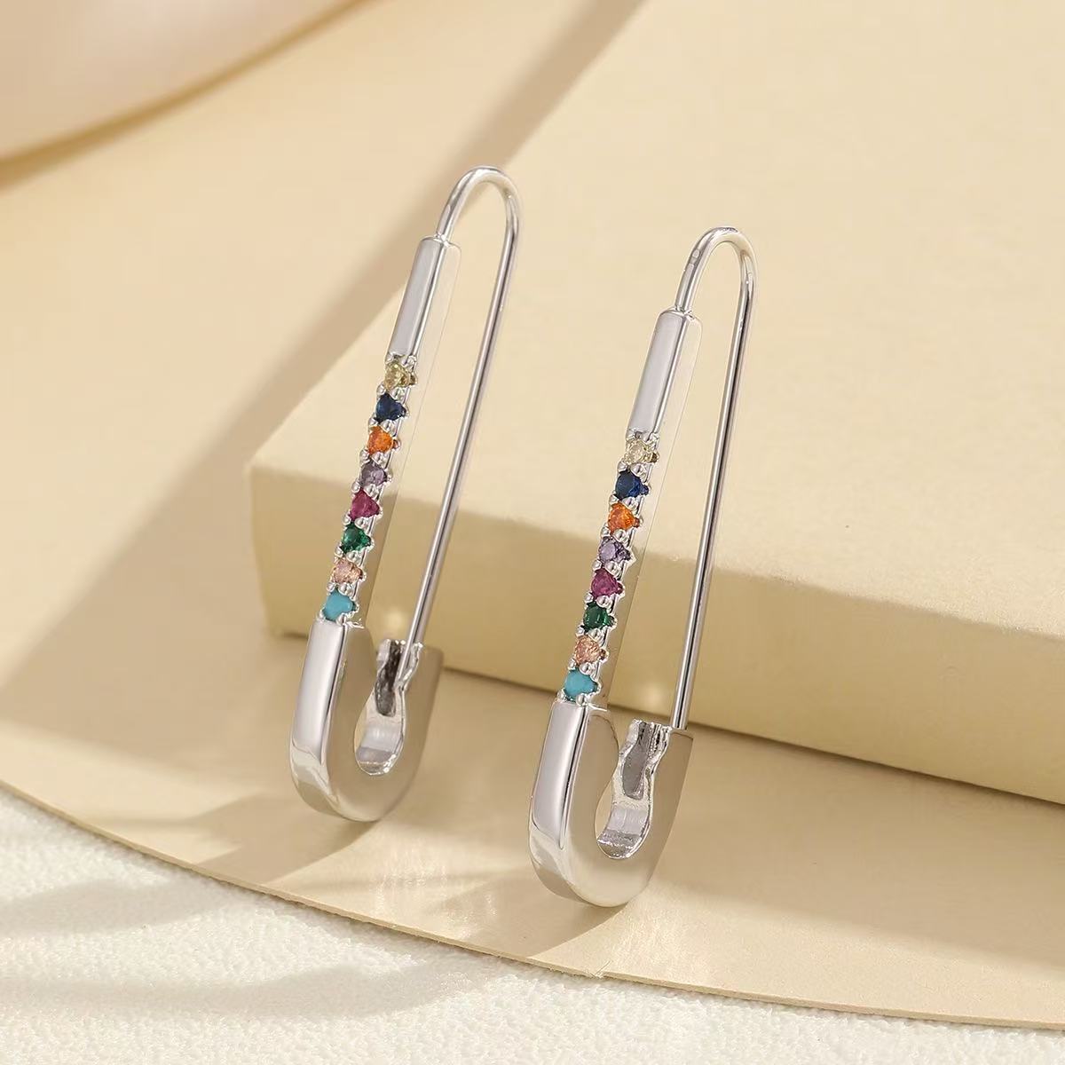 Cross border fashion bestseller from Europe and America, personalized color zircon versatile jewelry wholesale, pin clip clip shaped earrings