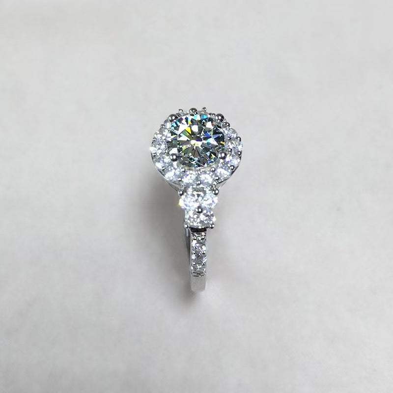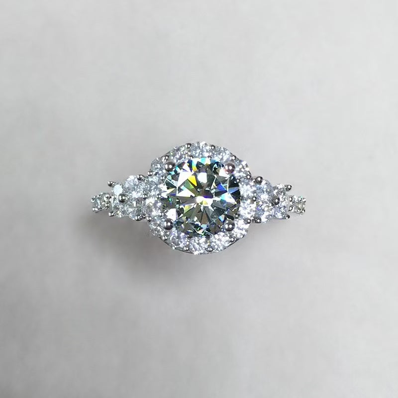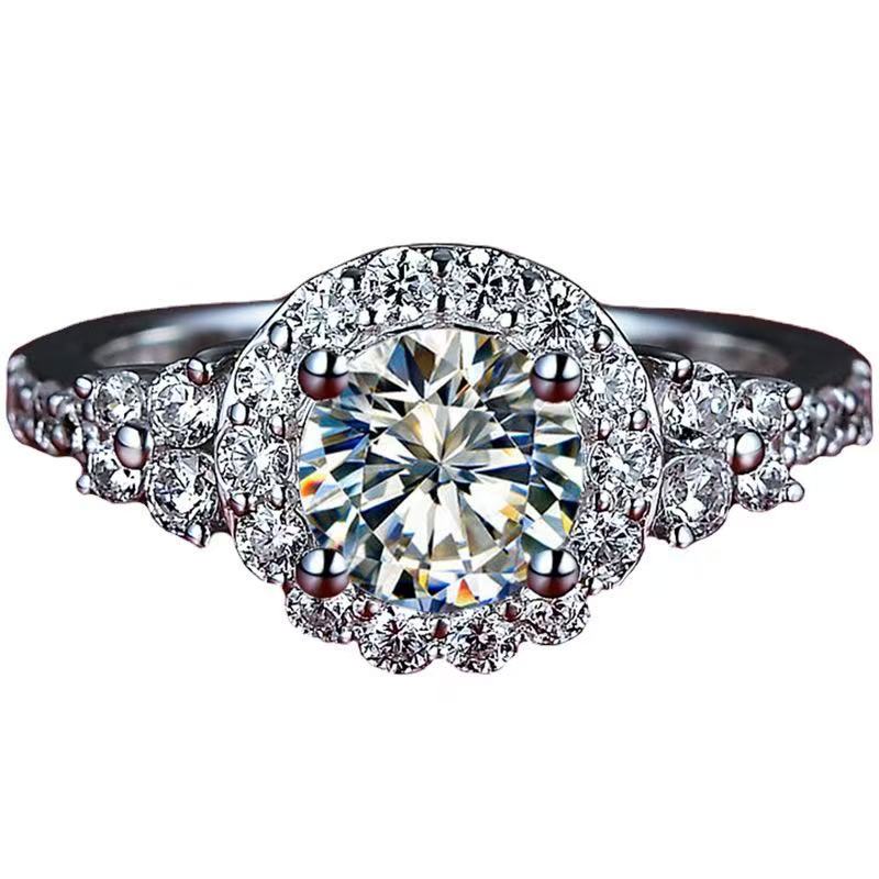Popular D-color Moissanite Diamond Ring Imitated from the United States Set with Luxury 2-carat Round Bag Ring Female