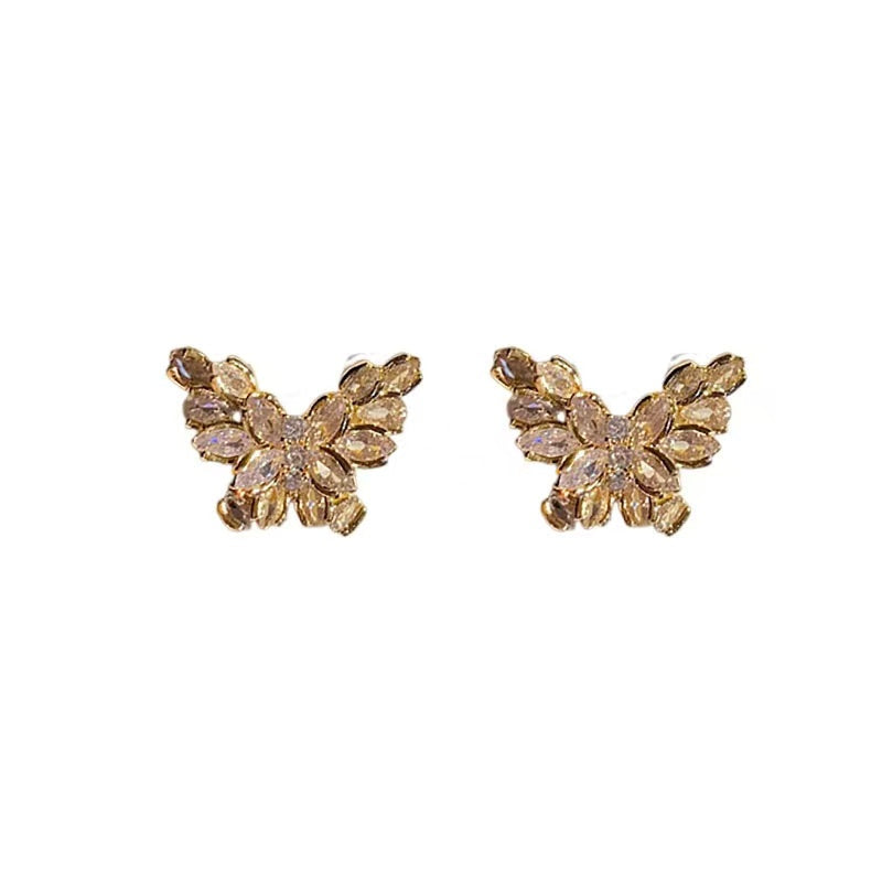 Silver needle zircon butterfly earrings with a light luxury and high-end feel, versatile commuting style earrings for women, fashionable and niche design