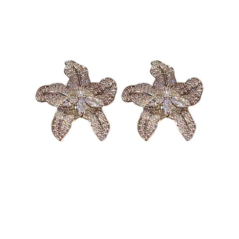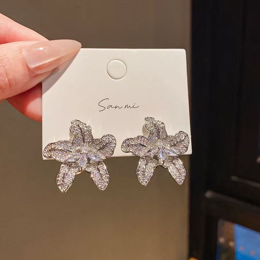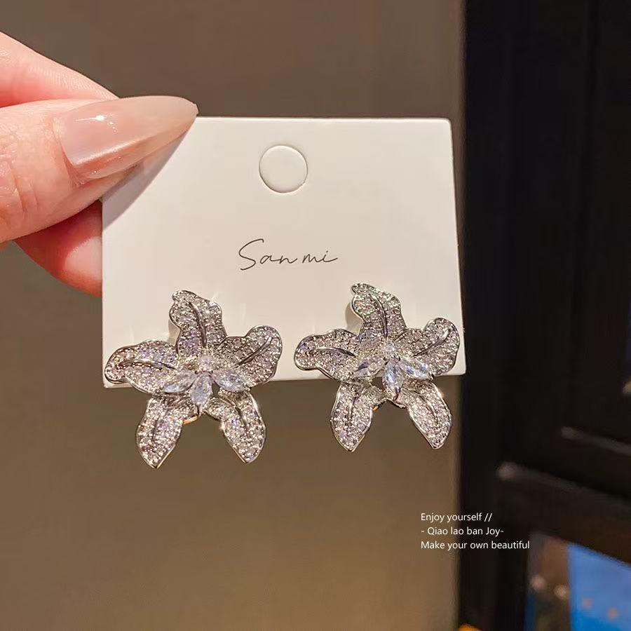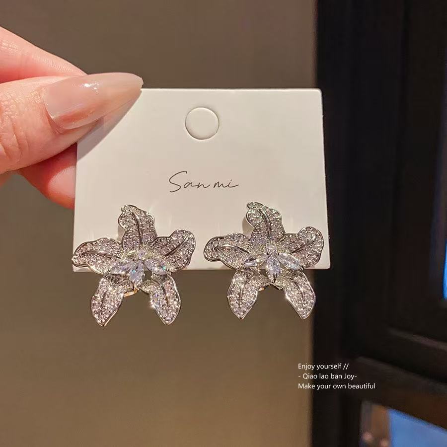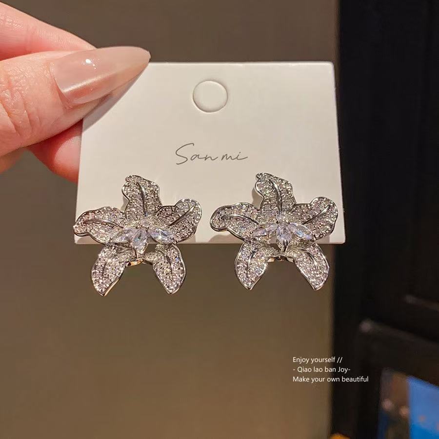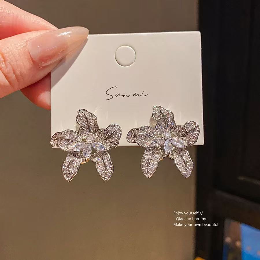 Silver needle zircon flower earrings, simple and cool style earrings, fashionable and versatile for commuting, light luxury earrings, design sense, niche