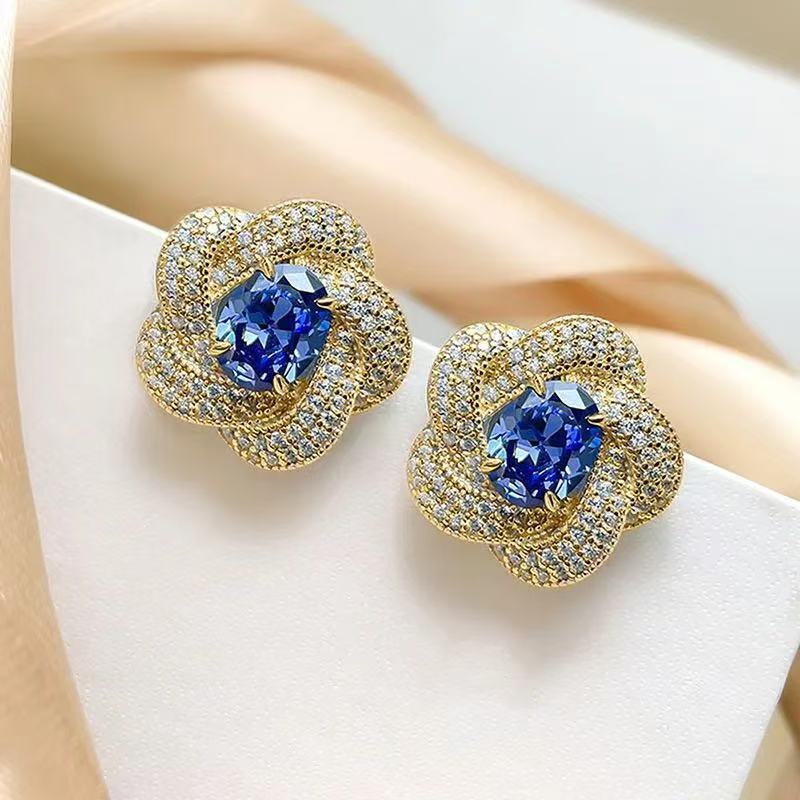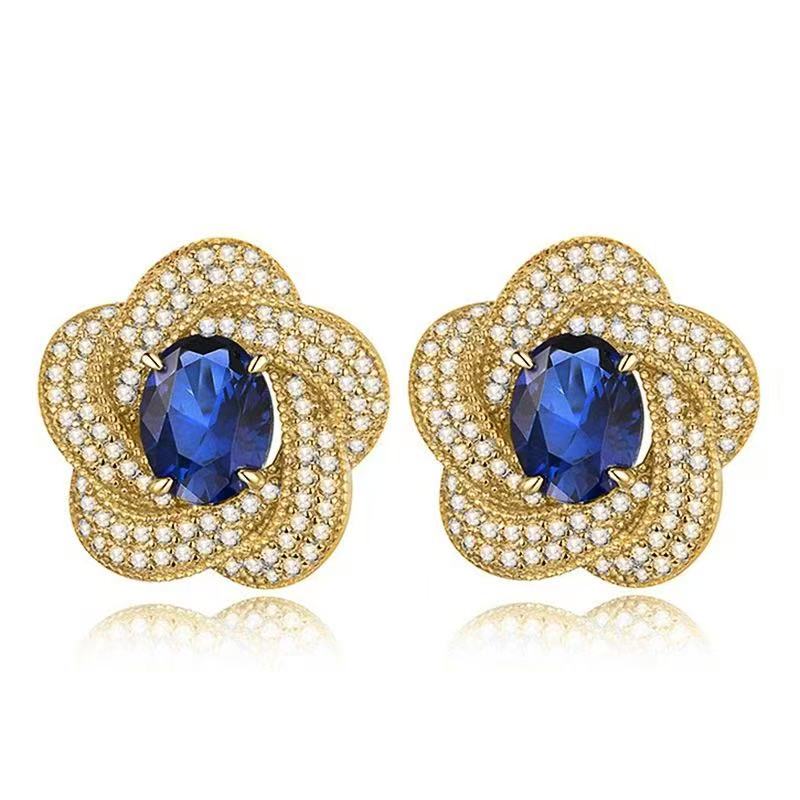 Huitan's European and American foreign trade imitates Tanzanian blue earrings, egg shaped temperament, socialite round face flower earrings, retro style earrings