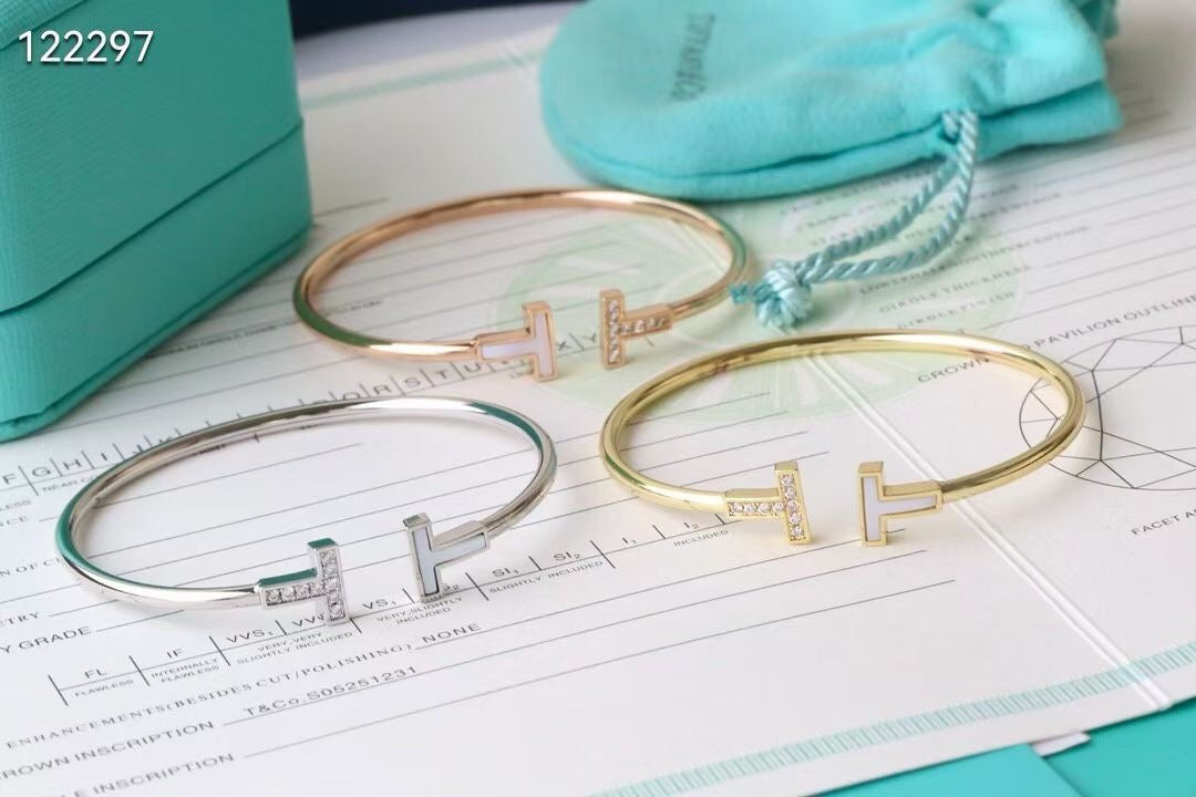 Tiffany bangle - Classic Double-T Beaded Diamond Bracelet
