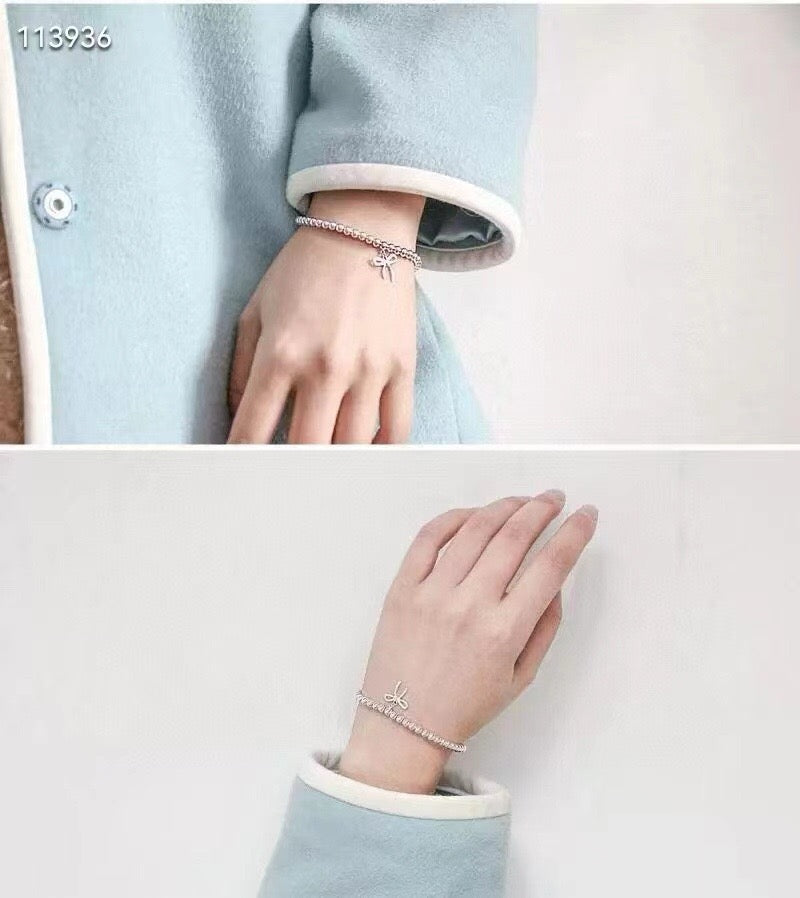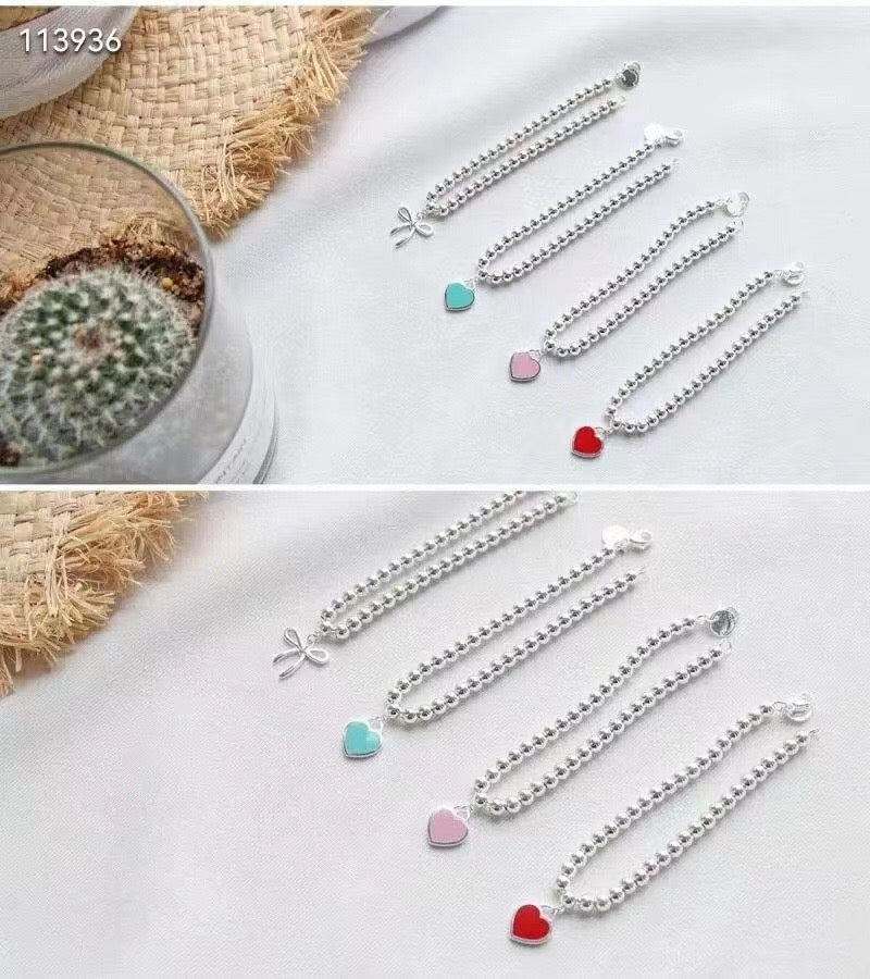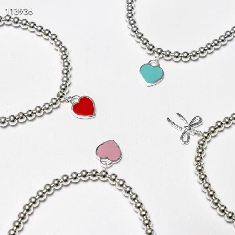 Tiffany bracelet - Peach heart bow-shaped prayer bead bracelet. Size: 16 - 21